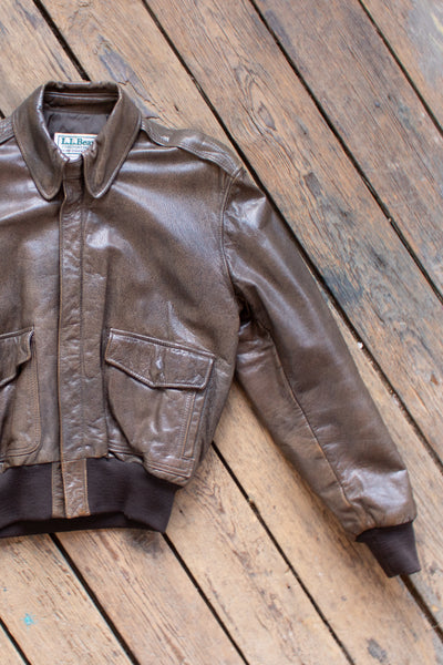 Vintage Light Brown Leather Bomber Jacket from the 80's made by LL Bean. These jackets are styled after the A2 Jackets from World War II. Made from 100% Genuine Goat Leather with a Thinsulate liner for additional warmth.